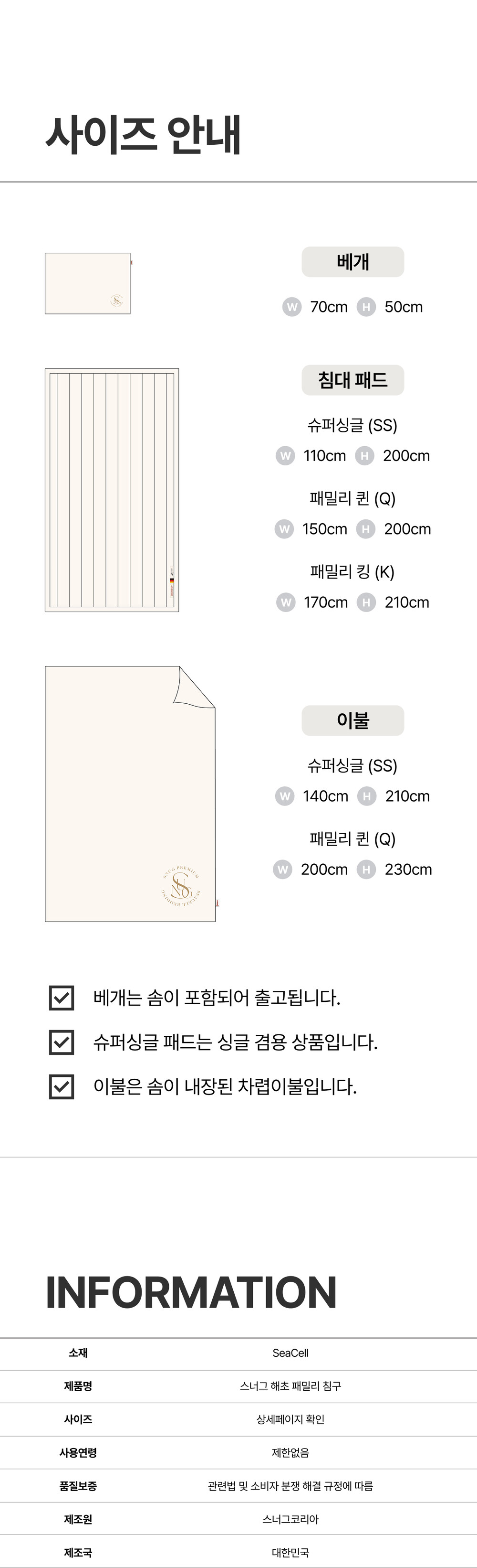 리퍼브대전 스너그 사계절 해초 패밀리 침구 SS 풀세트
