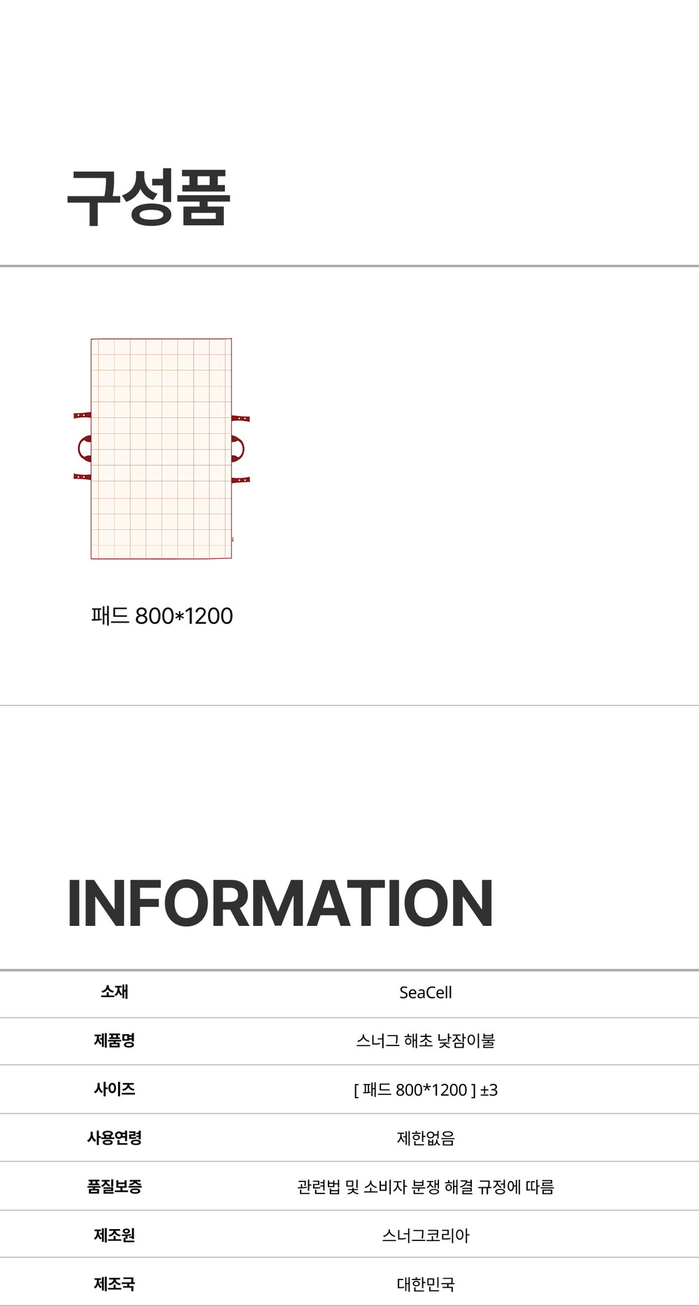 리퍼브대전 스너그 해초 낮잠이불 패드 단품